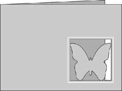 A6 kokoinen valkoinen korttipohja, johon stanssattu perhosen mallinen aukko.
