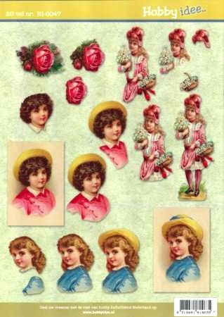 Vintage aiheiset tyttöset 3D-kuvana.