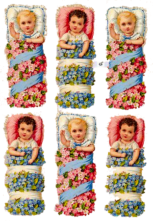 Herttaiset vauvat kukkapeitoissaan.