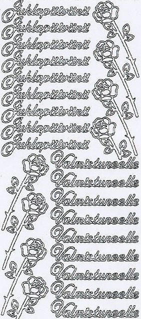 Monipuolinen ääriviivatarra-arkki ylioppilas korttien koristeluun.
