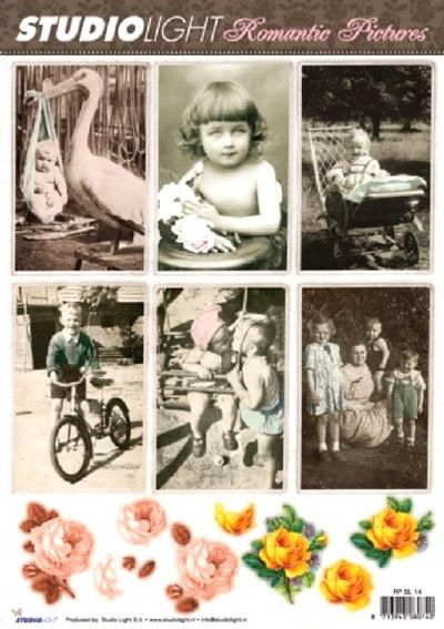 A4-kokoinen arkki täynnä ihania leikekuvia vintage-tyyliin.