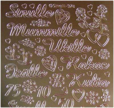 Sinulle Rakas/Mummille/Ukille/Isälle ja vuosipäiviä numeroin, sekä kukkia ja sydämiä.