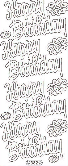 Iso näyttävä teksti "Happy Birthday" glitterkultaisena ääriviivatarrana.