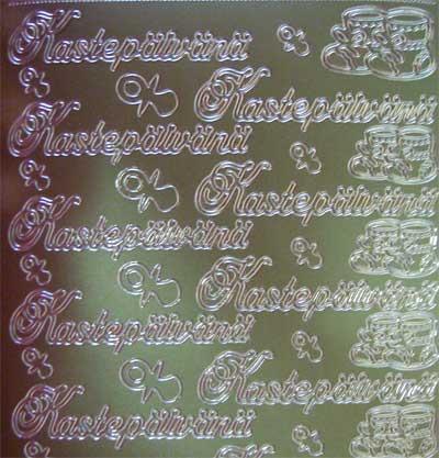 Ääriviivatarra jossa paljon "Kastepäivänä ja Vauvaonnittelut"-tarroja,