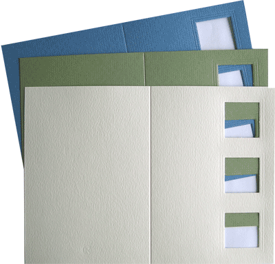 Trio ikkunakortti, kortissa kolme neliönmallista ikkunaa, taitettava A6, Romak-laatua.