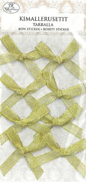 Kimallerusetit askarteluun ja koristeluun. Rusettien takana tarrakiinnitys.