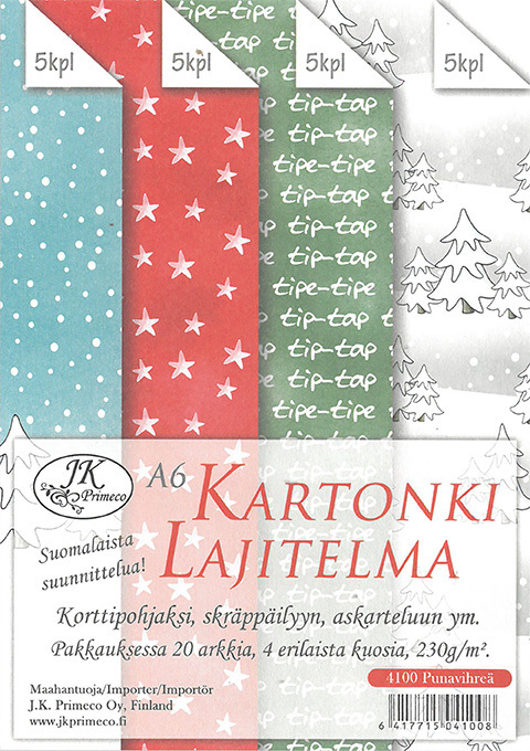 Pakkauksessa 20 arkkia/4 eri kuosia.