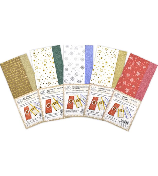 Lajitelma askartelukartonkeja askarteluun, korttien ja rasiakorttien koristeluun.