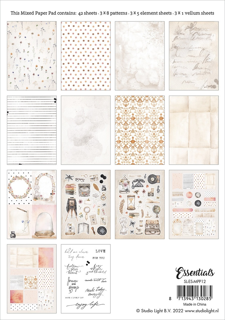 Sisältää leikekuvia, taustoja ja vellumsivuja joissa tekstit.