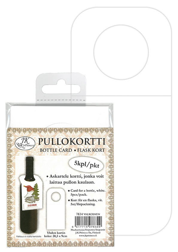 Pullokortti lahjapullon kaulaan. Koristele pullokortti haluamallasi tavalla ja ripusta se pullon kaulaan.