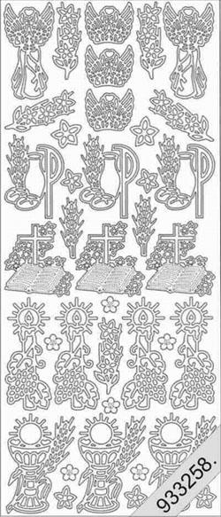 Ääriviivatarra-arkki jossa paljon kauniita kuvia, monenlaisiin kortteihin.